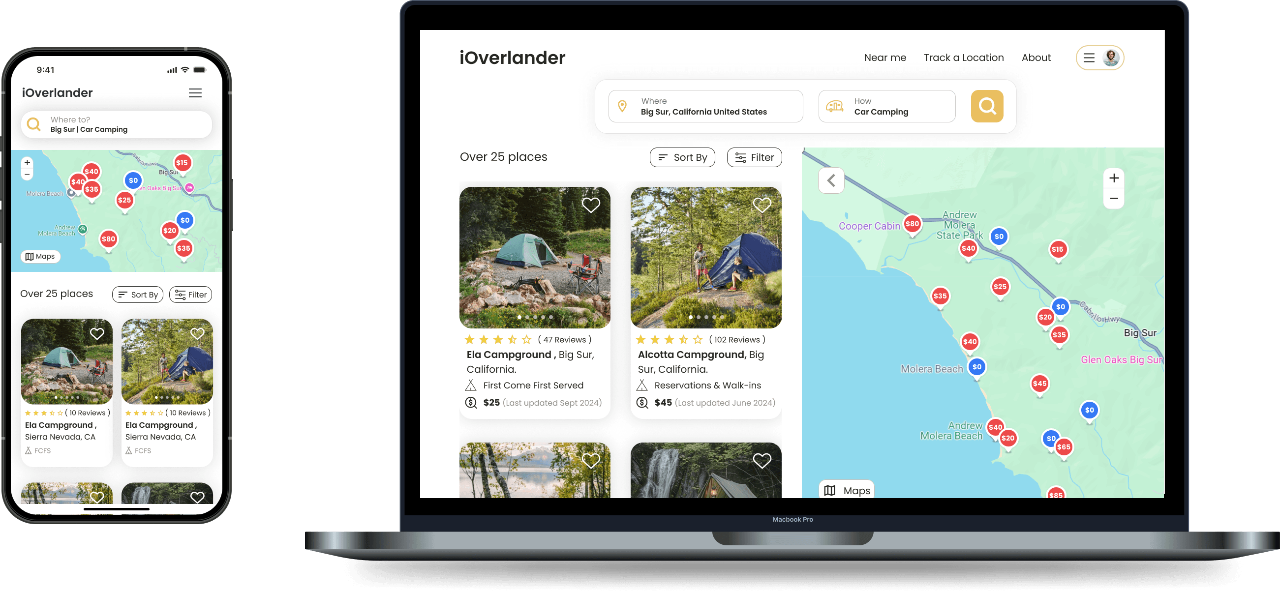 Visual Clarity: The map-based interface provides a visual overview of campsites, making it easy to identify nearby options.